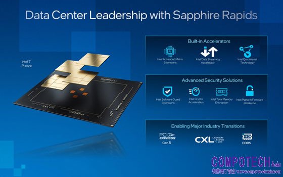 • Sapphire Rapids:對於採用Intel 7的P-core系列,英特爾強調Sapphire Rapids為迄今功能最為豐富的Xeon,並在數個關鍵領域擴大其資料中心的領先地位,包含AI效能和安全性功能。下個月,英特爾將開始逐步出貨 Sapphire Rapids,引領產業轉型至次世代記憶體和介面標準,包含DDR5、PCIe Gen5和新的Compute Express Link高速互連。