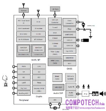 MediaTek全新無線連網系統單晶片Filogic 130A(MT7933)整合了微控制器、AI引擎、Wi-Fi 6和藍牙5.2及電源管理單元(PMU)、獨立音訊數位訊號處理器(DSP)等單元。其中,音訊數位訊號處理器(DSP)能夠使設備製造商輕鬆地在其產品中添加語音助手和其他服務。憑藉先進的功能與高集成度,本方案可為小尺寸裝置提供節能、可靠及高效的網絡連接,是各類物聯網(IoT)裝置的極佳選擇。