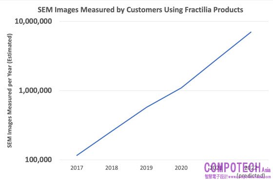 圖二_Fractilia觀察到,客戶使用包括FAME平台在內的Fractilia產品量測到的掃描式電子顯微鏡(SEM)影像數量呈指數成長。