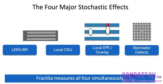 微影隨機性誤差是隨機出現且不會重複的圖案化錯誤。在EUV製程中,微影製程圖案錯誤的製程容錯空間,可能超過一半都耗費在隨機性誤差上。晶圓廠要控制這個問題就必須量測製程隨機性誤差;然而,現有的方法並不夠準確,而先進製程晶圓廠已無法負擔因忽視隨機性誤差所導致良率損失的後果。製程隨機性誤差對於先進波長193奈米光學微影,早已是個問題,特別是雙重曝光和四重曝光微影製程,而在EUV製程中,由於圖案進一步微縮,製程隨機性誤差則會更大幅降低良率而造成成本大幅提升。