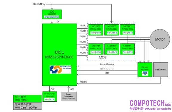 圖示3-大聯大世平基於MindMotion產品的低壓無刷電機應用方案的方塊圖