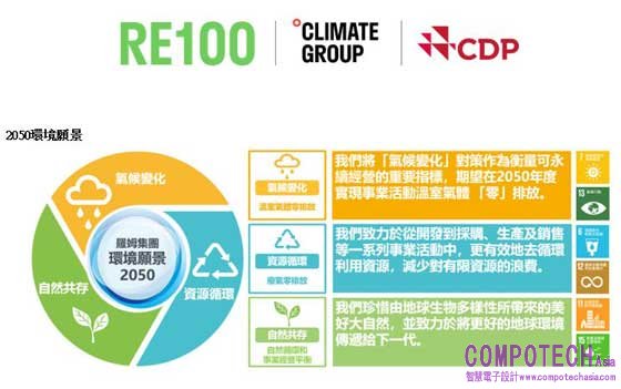 ROHM將根據2021年4月制定的「2050環境願景」,在日本和海外集團公司同時推動環境管理措施,目標是到2050年實現「溫室氣體淨零排放」和「零排放」,致力減輕環境負擔。此外,同年5月公佈的中期經營計畫「MOVING FORWARD to 2025」中,宣佈了到2050年日本國內外所有的業務活動中,所用的電力將100%使用可再生能源(水力、地熱、太陽能發電等)。