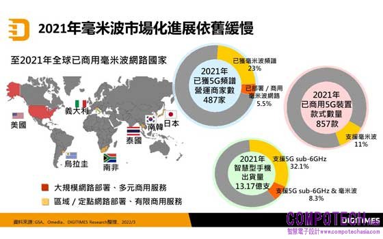 2022年4月27日--DIGITIMES Research 根據DIGITIMES Research分析師吳伯軒觀察,全球達到10億5G行動用戶規模的時間將較4G縮短,而絕大多數來自中國市場,使得中國對行動通訊產業的影響力漸增,一是中國在5G通訊優先扶植sub-6GHz產業鏈,影響全球毫米波市場化不如預期,二是美國積極推動各國脫鉤中系電信設備政策,導致中國提高對本身電信設備業者的扶植力道,恐排擠開放式RAN架構的發展空間。