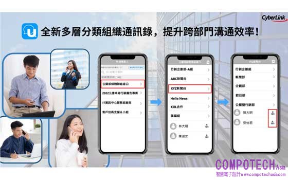 2022年05月09日--多媒體創作軟體及 AI 人工智慧領導廠商訊連科技(5203.TW)推出「U 通訊」7.5 版本。全新「組織通訊錄」功能支援多層分類設定,可依照專案類型或組織架構編列多本通訊錄,供成員快速查找聯絡人,減少多向溝通之時間成本,於疫情間更可協助企業提升內外跨部門之專案合作效率,並隨時保持流暢的溝通管道。