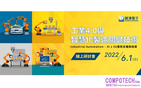 2022年5月27日--專注於新產品導入、提供種類最齊全半導體與電子元件的授權代理商Mouser Electronics ( 貿澤電子 ),宣佈將於6月1日舉辦「工業4.0與智慧化製造關鍵技術」線上研討會。在週三下午的2點到4點,貿澤電子特別邀請Analog Devices、Silicon Labs的嘉賓以及工研院南分院智慧製造技術顧問與您線上相約,分享工業自動化領域的應用解決方案和關鍵技術等內容,探討自動化生產線背後的核心技術,共同加速產業實現智慧化製造。