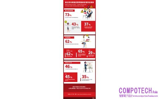 除此之外,這份研究也發現,全球約有四分之一 (24%) 仍採用手動方式來管理他們的資安系統、有 29% 的企業仍採用區域而非集中式管理,這將使得受攻擊面管理更加零散、出現更多可視性漏洞。