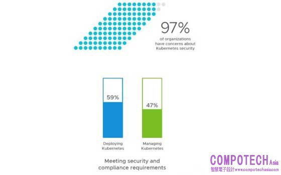 VMware 最近的一項研究 1 顯示,97%的企業存在 Kubernetes 安全問題(圖-1)。滿足安全與合規要求已成為部署(59%的受訪者)和管理(47%的受訪者)Kubernetes 的頭號挑戰。缺乏對 Kubernetes 最佳實踐的瞭解以及由此產生的錯誤配置會給雲原生應用安全帶來巨大的威脅。