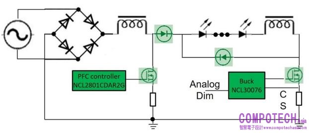 NCL30076是一款DC-DC降壓控制器,可通過模擬調光控制將調光範圍降低至1%,以減輕可聽噪聲和PWM調光的閃爍。並且其專有LED電流計算技術可在整個模擬調光範圍內實現精確的恒定電流。此外,NCL30076的多模式操作系統可提供高效率,並在重載時通過QR最小化開關損耗,在輕載時通過DCM進行深度模擬調光。