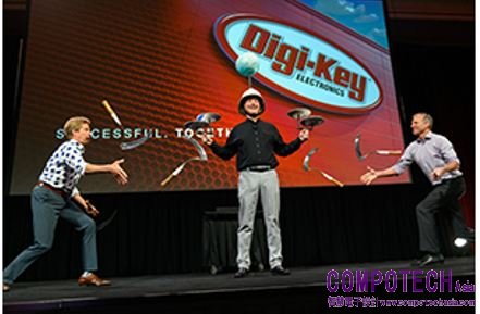 Digi-Key 在 EDS 舉辦以“合作共贏”為主題的年度早餐活動,Dave Doherty 和 Ian Wallace 發表了精彩點評,The Passing Zone 組合奉上了雜耍表演。