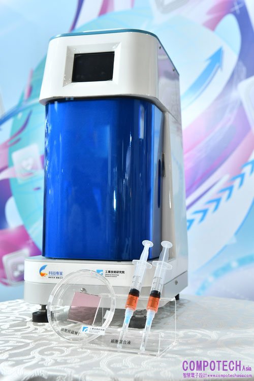 再生醫療正夯,進行細胞治療時,細胞皆須在實驗室中培養數周才能使用,「細胞組織層片生醫材料整合系統」搭配工研院自建之細胞庫與生醫材料,只要將細胞混合液放入機台,僅需30分鐘,細胞混合液就變身成一塊如「果凍般」的細胞組織層片。無菌包裝、使用安全,將能直接在臨床上使用,投入細胞治療再生醫學,或肌腱、皮膚組織、心肌組織等損傷修復。目前已針對臺灣、日本、大陸、歐洲、美國等市場申請專利,擬與國內細胞治療產業廠商,或臺灣醫材產業廠商共同合作投入商品化。
