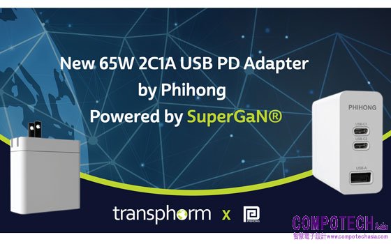 2022年8月2日--高可靠性、高性能氮化鎵(GaN)電源轉換產品的先鋒和全球供應商Transphorm, Inc. (Nasdaq: TGAN)宣布,全球電源產品和電動汽車充電站供應商飛宏(Phihong)新推出的65W 2C1A USB PD配接器採用了該公司的氮化鎵技術。這款配接器採用Transphorm的SuperGaN®第四代技術,這是一種氮化鎵場效應管(FET)平臺,具有以下優點:系統設計簡單,元件數量少,性能更高,可靠性一流。