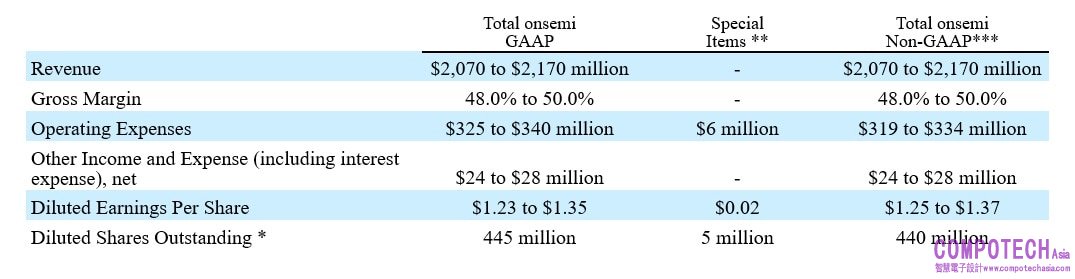 下表概列安森美預計2022年第3季的GAAP及non-GAAP展望: