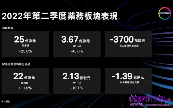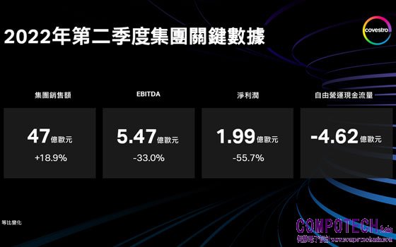 「中國取消封控措施之後恢復快於預期,市場對我們產品的需求也未受影響,這些因素使我們在第二季度獲益。」科思創財務長陶鵬飛博士(Dr. Thomas Toepfer)表示:「今年下半年,宏觀經濟風險再次顯著增加,尤其是我們在德國的生產基地需要面對極高的能源成本和天然氣供應的不確定性。」