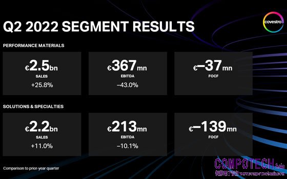 2022年上半年集團銷售額增長29.2%至94億歐元(去年同期:73億歐元),主要原因包括銷售價格上漲、匯率波動以及因收購帝斯曼樹脂和功能材料 (RFM)業務所帶來的產品組合變化。由於原材料和能源價格上漲(部分影響已被銷售價格水準上漲抵消),集團2022年上半年的EBITDA下降了13.3%至14億歐元(去年同期:16億歐元)。2022年上半年淨利潤為6.15億歐元(去年同期:8.42億歐元),而自由營運現金流量下降至負4.45億歐元(去年同期:6.92億歐元)。