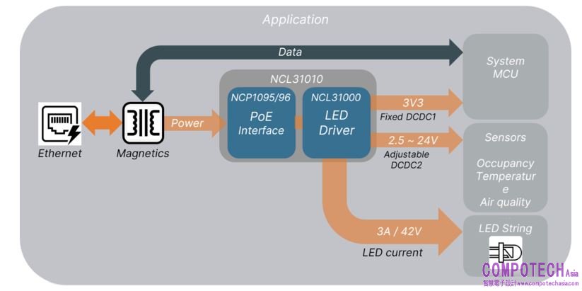 圖 2:安森美的NCL31010 PoE介面LED驅動器