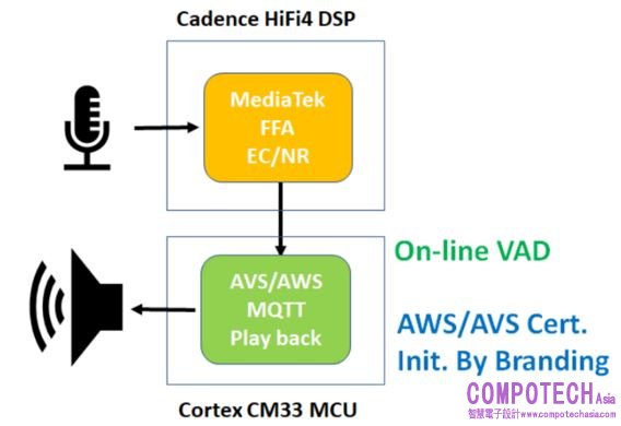 MediaTek Filogic 130A(MT7933)整合了獨立音頻數位訊號處理器HiFi4 DSP,具有進行回音消除AEC(Acoustic Echo Cancelling)和增強語音的遠場處理(Far-Field Process)功能,能夠全方位符合語音控制的物聯網應用Alexa Built-in裝置。