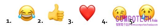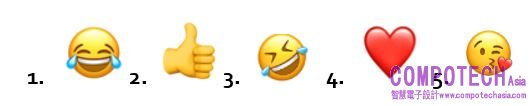 今年的五大常用Emoji,相比去年看起來更為開心:
