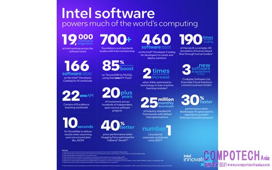 全球的運算要求、需求和資源持續成長。英特爾在硬體方面的獨特優勢,結合對強勁、開放軟體生態系的承諾,我們正朝向新合作領域邁進。英特爾認為,未來最具效率的軟體將橫跨CPU、GPU、IPU、FPGA、ASIC等並提供最佳化,以便讓每個應用軟體都能夠在英特爾硬體上更好、更快、更安全地運作。