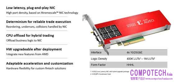 2022年10月20日--當今各大交易公司、造市者、避險基金與交易所需要以低延遲交易執行和風險管理獲得競爭優勢。全新Alveo™ X3系列是專門為超低延遲交易篩選和最佳化的首款AMD網路卡,現正量產及發貨。