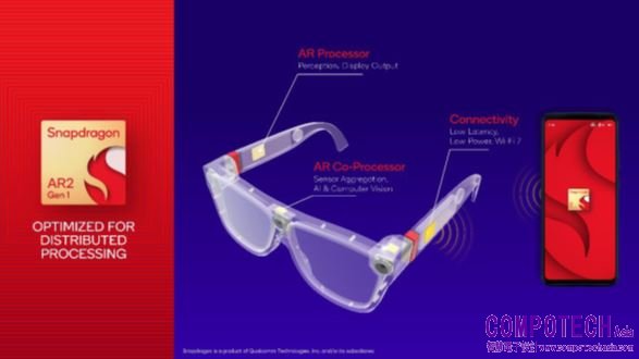 AR分散式處理架構:為了更均衡地配重並減少眼鏡兩側的臂寬,Snapdragon AR2採用包含AR處理器、AR協同處理器和連接平台的多晶片架構。Snapdragon AR2動態地將對延遲敏感的感知數據直接分配在眼鏡上處理,並將更複雜的數據處理需求卸載至搭載Snapdragon的智慧型手機、PC或其他相容的主機裝置 上。