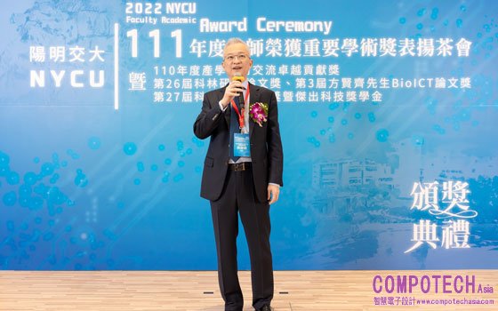 2022年11月17日--科林研發總經理郭偉毅博士於 11 月 8 日親臨國立陽明交通大學頒獎典禮,頒發科林研發論文獎暨傑出科技獎學金予第 26 屆與第 27 屆共 18 名陽明交大學生,現場表揚多位優秀學子。