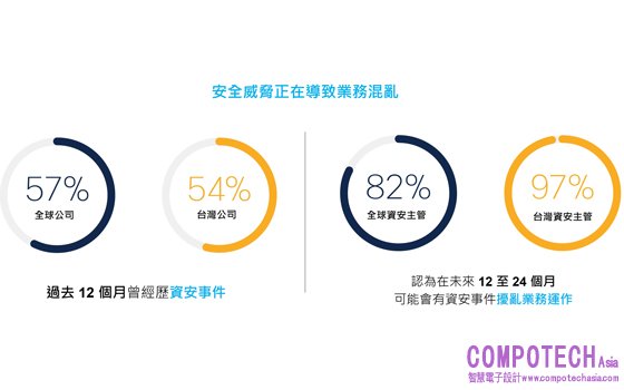 調查亦指出台灣資安主管中,有 97%認為資安事件可能會在未來 12 至 24 個月擾亂業務運作;好消息是,他們正在積極提升防護以應對內外威脅。危機意識高漲的情況下,89% 台灣資安主管預期公司未來一年的資安預算將提高 10% 以上, 而91% 預期 24 個月內會升級 IT 基礎架構。