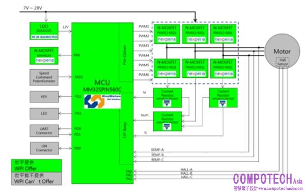 圖示3-大聯大世平基於MindMotion產品的低壓無刷馬達驅動方案的方塊圖