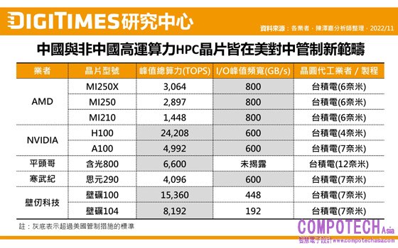 DIGITIMES研究中心指出,中國半導體產業雖挾內需潛力快速發展,但美國祭出的多項管理新制將遏止中國在先進半導體與先進製程進展,同時拖緩中國AI與超級電腦產業發展,短期雖不影響多數HPC晶片或車用晶片開發,但長遠來看,中國高運算力晶片、先進製程受美國牽制,全球半導體產業版圖勢將重新洗牌。