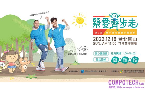 2022年12月16日--全球NAND快閃記憶體控制晶片領導廠商慧榮科技(NasdaqGS: SIMO)將于12月18日在花博公園花海廣場攜手忠義基金會舉辦第3屆「築愛齊步走」公益健走暨愛心園遊會,鼓勵民眾即使疫情的轉折讓生活充滿變數,經濟活動冷淡,仍要熱衷健康、熱心公益。透過參加園遊會與健走,凝聚家庭力量,更能將報名費或市集認購義賣品的收入累積,協助忠義基金會興建兒少福利園區,讓安置服務得以順應社會變遷轉型,這是關懷失依兒的具體作法。主辦單位忠義基金會期望藉此號召更多力量人士願意投入目前距離第一期興建目標款仍短少7成的創建經費。