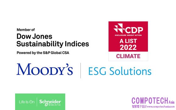 2022年12月22日--能源管理及自動化領域的數位轉型領導者法商施耐德電機Schneider Electric近日於環境、社會和治理(ESG)三大面向的評鑑中脫穎而出,分別在兩大權威永續評比中獲選為產業別中的最高分。根據最新公布的評選結果,施耐德電機分別於國際永續評比機構標普全球公司(S&P Global)舉辦的2022年標普全球企業永續評比(CSA)及穆迪(Moody’s)所組成的Vigeo Eiris永續評級中,於電力元件和設備組中獲得第一名殊榮。此外,更榮獲CDP最高等級「A」級認證,並被選為致力於環境資訊透明度和行動的領導者。