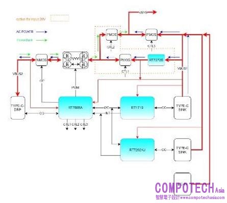圖示3-大聯大詮鼎基於Richtek產品的Type-C PD UPS電源方案的方塊圖
