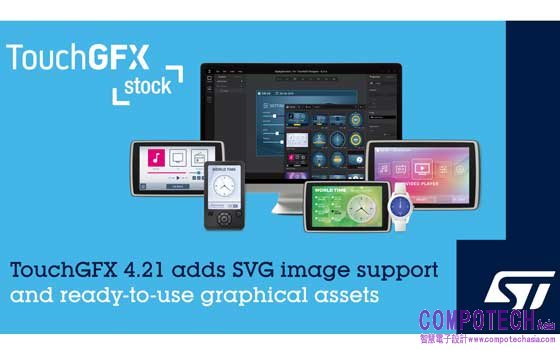 4.21版亦支援SVG圖像(Scalable Vector Graphics image format,可縮放向量圖形圖像格式),為使用者介面的開發提供更多自由空間。開發者可藉由TouchGFX Designer中新增的一個小工具來存取SVG圖像,而SVG圖像使用意法半導體STM32 MCU中的專用圖形處理硬體,例如,NeoChrom GPU處理器,以維持其出色表現。