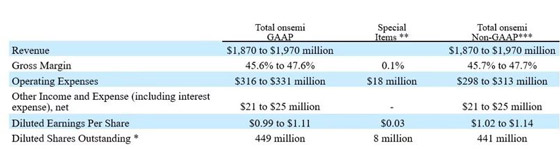 下表概列安森美預計2023年第1季度的GAAP及non-GAAP展望: