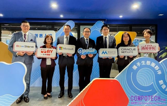 【圖說:2023年拓展企業服務生態圈範疇,全力實踐普惠人資,水平鏈結跨領域廠商,期許給予企業員工更貼心、更人性化的服務體驗。從左至右為景承科技創辧人暨董事長 林濬暘、全盈+PAY總經理 劉美玲、台灣微軟總經理 卞志祥、數位發展部數位產業署署長 呂正華、MAYO鼎恒數位科技創辦人暨執行長 簡士評、Oracle NetSuite台灣總經理 林婉玲、商周CEO學院院長 曠文琪】