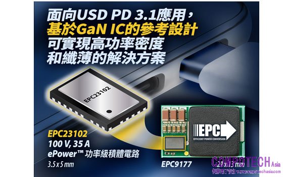 宜普電源轉換公司首席執行長Alex Lidow說:“GaN IC為DC/DC轉換器提供了最高的功率密度。我們的氮化鎵功率级為功率系统設計人員提供了適用於USB PD 3.1的最高功率密度和採用更少元件的解決方案。EPC9177参考設計採用EPC23102,提高了效率和功率密度,並降低了USB PD 3.1的整體系统成本。”