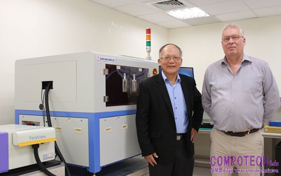 圖:TZ6000 System 結合TeraPulse Lx (左); 筑波科技董事長許深福(中); TeraView首席科學家Dr. Philip Taday