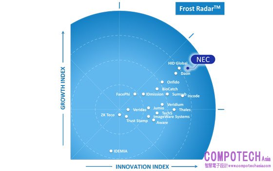 「NEC是生物辨識解決方案產業的領導者。透過其強大的生物辨識驗證解決方案,NEC能夠滿足新舊客戶的需求、賦予終端用戶掌控自己生物辨識資料的能力,並帶領生物辨識產業邁向下一個成長階段,」Frost & Sullivan商業與公共安全產業研究經理Danielle VanZandt表示。