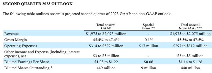 下表概括安森美預計2023年第2季度的GAAP及non-GAAP展望: