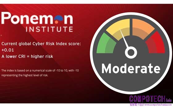 註一:這份每六個月一次的「網路資安風險指標」(Cyber Risk Index,簡稱 CRI) 報告,是由 Ponemon Institute 訪問全球 3,729 家企業機構的結果。該指標是一個從 -10 到 10 的數字,- 10 到 -5.01 代表高風險,-5.0 到 0 代表略高風險,0.1 到 5.0 代表中等風險,5.01 到 10 代表低風險。其計算方式是將「網路資安準備度」的分數減去「網路資安威脅」的分數。