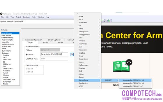 2023年5月23日--嵌入式開發軟體與服務之全球領導者 IAR與業界領先的MCU供應商凌通科技(Generalplus)聯合宣佈,最新發表的完整開發工具鏈IAR Embedded Workbench for Arm 9.4版本已全面支持凌通科技GPM32F系列MCU。