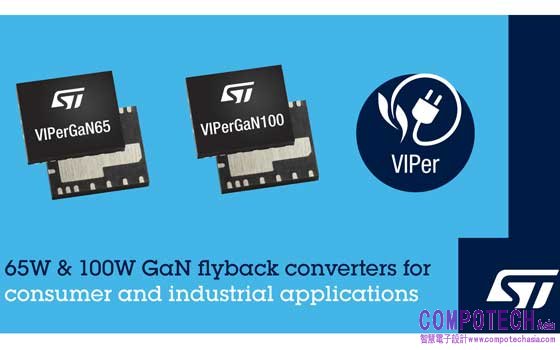 2023年5月26日--服務橫跨多重電子應用領域的全球半導體領導廠商意法半導體(STMicroelectronics,簡稱ST;紐約證券交易所程式碼:STM)之高壓寬能隙功率轉換晶片系列新增VIPerGaN100和VIPerGaN65兩款產品,適合最大功率100W和65W的單開關準諧振(Quasi-Resonant,QR)返馳式轉換器。此小尺寸與高整合度之產品的設計目標應用包括USB-PD充電器、家電、智慧建築控制器、照明、空調、智慧量表和其他工業應用的開關式電源(Switched-Mode power Supply,SMPS)。