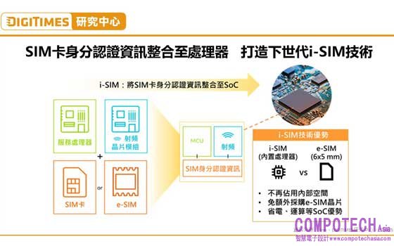 2023年6月20日-- 隨著蘋果於2022年9月在美國市場推出支援e-SIM (embedded-SIM)並取消實體SIM卡槽的iPhone 14機型後,e-SIM總算是逐漸步入主流,然產業正掀起新一波技術革命,名為i-SIM (integrated-SIM)的技術有望替代e-SIM。相較於傳統SIM卡,e-SIM與i-SIM的出現將使得包含手機、各式無線連網裝置的資產追蹤作業更為便利,擺脫實體SIM卡的插拔繁瑣流程,成為物聯網時代普及的必備元件。