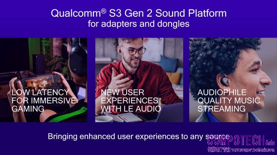 遊戲方面,此解決方案針對音訊來源使用的轉接器最佳化。當與基於高通S5和S3 Gen 2的耳機和頭戴式裝置配對時,可根據外部射頻環境提供強大的連接能力和動態延遲適應,讓遊戲玩家可以離開他們的遊戲機或PC,仍能聽到所有遊戲動態,並參與聊天,且音訊不中斷。
