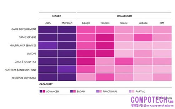 該研究還強調了遊戲垂直領域雲端服務市場的競爭日益激烈。例如,谷歌(Google )和騰訊(Tencent)均利用其在遊戲領域深厚的專業知識,為遊戲開發和營運提供一系列優秀的解決方案,而其餘的供應商亦都擁有獨特的優勢,能夠吸引特定的細分市場。Liam Deane指出:「遊戲行業的買家在選擇雲端平台時,比以往任何時候都必須仔細考慮自己的所有選擇,而技術供應商需要了解其產品如何與針對遊戲行業的不斷增長的雲端平台進行互動」 。