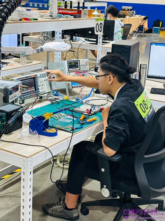 多年擔任全台技能競賽電子類裁判長的台灣科技大學電子工程系教授林淵翔博士則指出,在競賽過程中,每個選手都必須通過硬體、軟體、組裝測試三大考驗,選手們對電路板設計、程式撰寫、系統整合技能除了精熟之外,也要兼具符合標準、速度與功能正確,才能獲得好成績。
