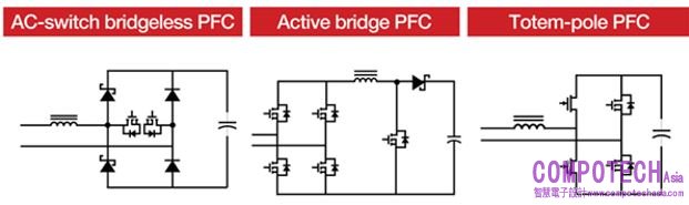 圖 2:可提高效率的各種 PFC 開關拓樸