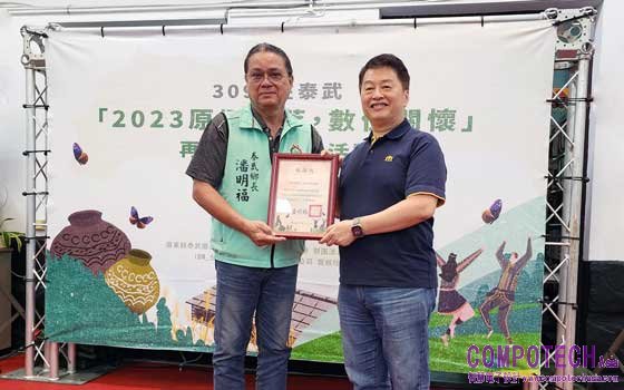 圖說:資策會與華碩文教基金會及台灣IBM共同執行再生電腦捐贈計畫,協助原鄉數位學習,屏東縣泰武鄉鄉長潘明福(左)特致贈感謝狀予資策會執行長卓政宏(右)。