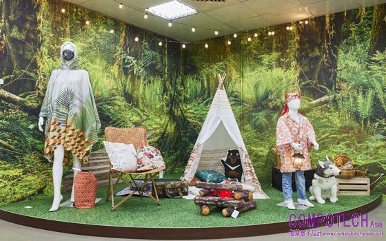 疫情過後露營以及戶外運動相當盛行,在本次成果發表會中也設立戶外休閒區作為第二展區,展區內又分為戶外服裝以及露營用品區。本次戶外服裝展示區所見的瑜珈服、鞋子、後背包等成品皆是使用ML-8000數位印花直噴機印刷,其中還有新形態的應用材料泰維克布料展示,具有抗拉、抗剪切力強、輕薄、柔軟、光滑、防水等多重特點,使用結合Pigment顏料型墨水的ML-8000數位印花直噴機以及噴印技術,能夠打造出兼具性能與美觀的戶外運動服飾。除了在服裝上的應用,露營用品區內的露營椅套、地墊、孩童運動服飾、帳篷,甚至是樹林背景皆是由ML-8000數位印花直噴機噴印而成。值得一提的是,樹林背景的材料為特殊宣影布,Epson首次嘗試噴印後圖案真實還原且平整,經特殊處理的布料也不會因氣候而受蟲蛀,可保存良久。Epson期盼透過與紡研所共同舉辦的噴印創新研發中心成果發表會,向企業和用戶展現高效率、低汙染的數位印花製程與未來紡織產業更多的可能性。歡迎有興趣導入數位印花製程的企業或設計師,聯繫Epson提供更詳細的服務註三。
