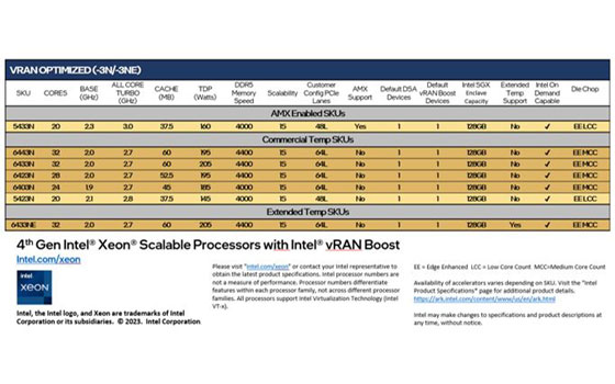此系列處理器於MWC 2023首次發表,為vRAN提供高效能、高能源效率等特色。藉由將vRAN加速直接全面整合至CPU當中,消彌對於外部加速卡的需求。Intel vRAN Boost獨特的創新設計,更是在vRAN市場上首見。