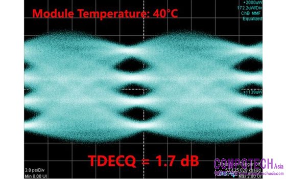 博升 106 Gbps VCSEL 驅動的 800G 光收發器已成功達到 100米 OM4 傳輸距離,在0°C-70°C模塊外殼溫度下,誤碼率低於 1E-8,符合IEEE標準。此外,博升還展示了其可以在低成本傳統 OM2 和 OM3 MMF光纖上實現60-100米傳輸,且誤碼率都非常低。